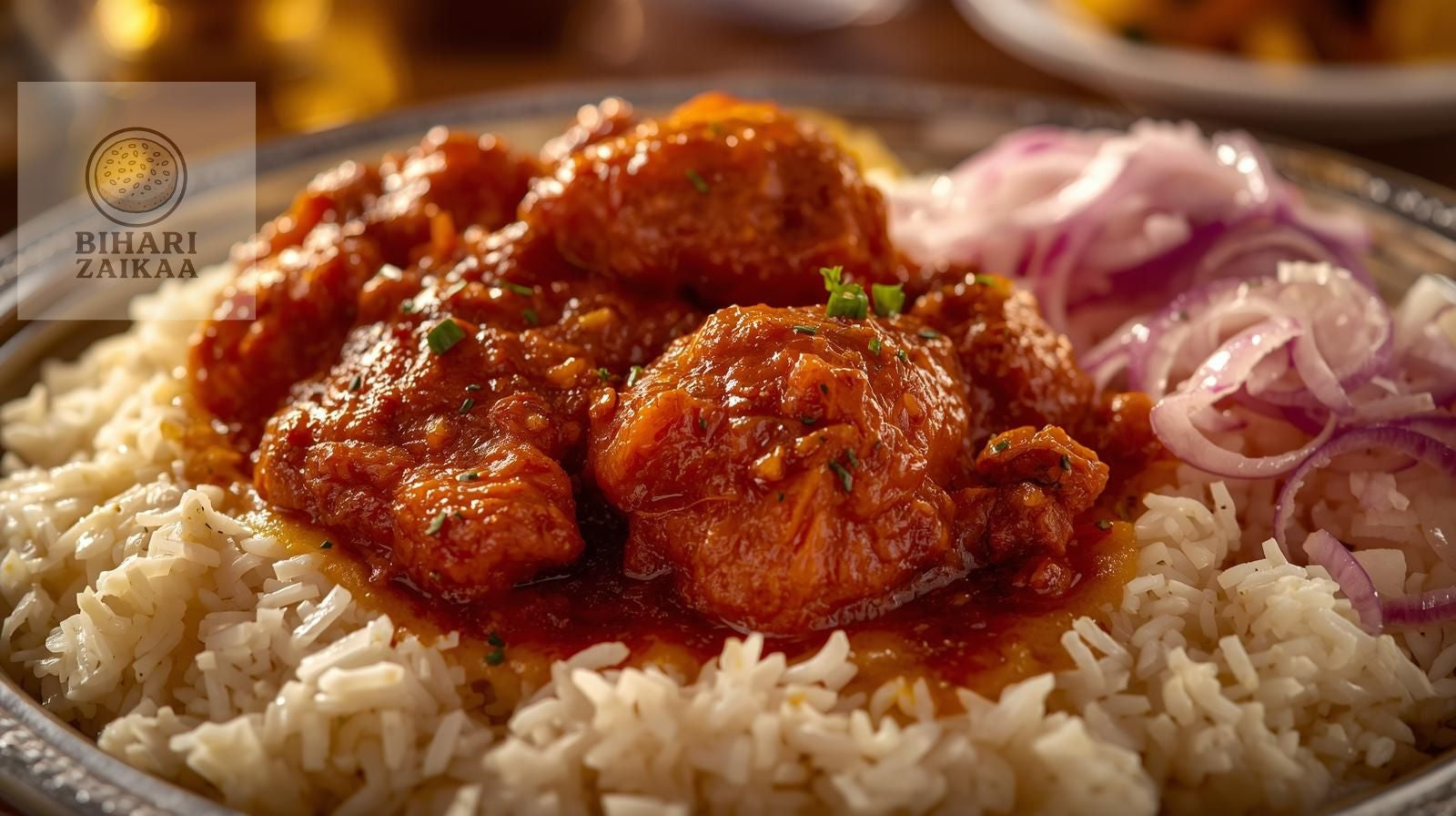 Served with Plain Rice, 3 Peices of Chicken and Onion.Steamed rice served with Bihari chicken curry cooked in aromatic spieces and homestyle masala. Soulful, hearty, satisfying combo—perfect for lunch, all-day meals, and dinner.